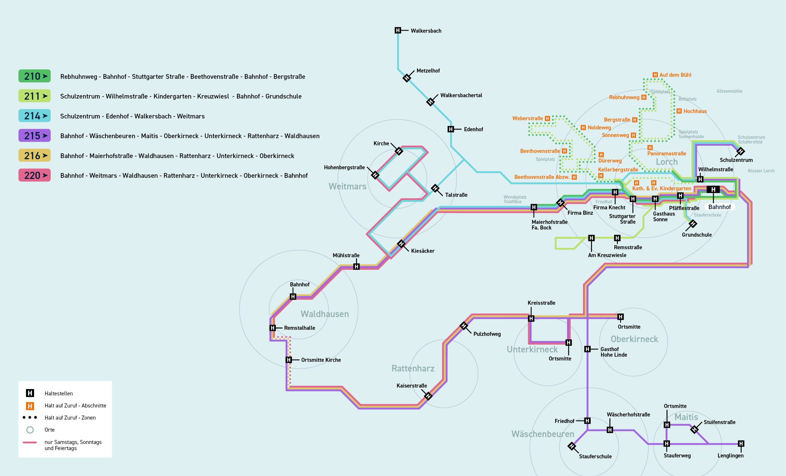 Der StadtBus Ellwangen verbindet die Wohnsiedlungen mit allen Infrastruktur-Einrichtungen in Ellwangen. Bequem erreichen Sie das Industriegebiet Neunheim sowie die Ellwanger Innenstadt, den ZOB (Bahnhof, Ärztehaus, Innenstadt), die St.-Anna-Virngrund-Klinik, das alte Haupttor der Kaserne oder den Friedhof.